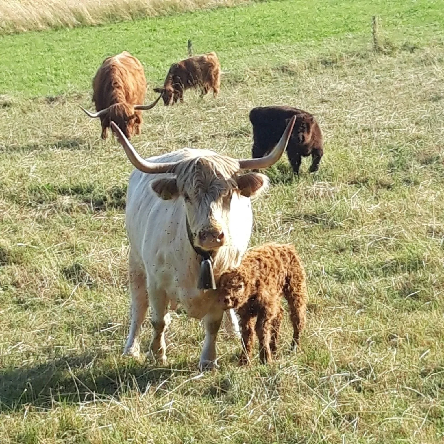Gefüttert werden die Highlander im Sommer mit Gras und im Winter mit Heu und Grassilage. Mais und Kraftfutter kommt keines zum Einsatz.